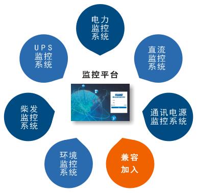 綜合監控管理係統包括:電力監控係統、工藝配電監控係統和工作環境監控係統三個獨立的子係統。綜合監控管理係統包括對高低壓配電櫃、變壓器、柴油發電機組設備的監控;工藝配電監控係統包括對UPS,蓄電池的監控;工作環境監控係統包括溫濕度、煙感、水浸等環境傳感器的參數監測,以及視頻監控、門禁監控、防雷監控、漏電監測等安防安全監控設備的實時監控,實現對機房係統外部環境工作狀態的監測。
