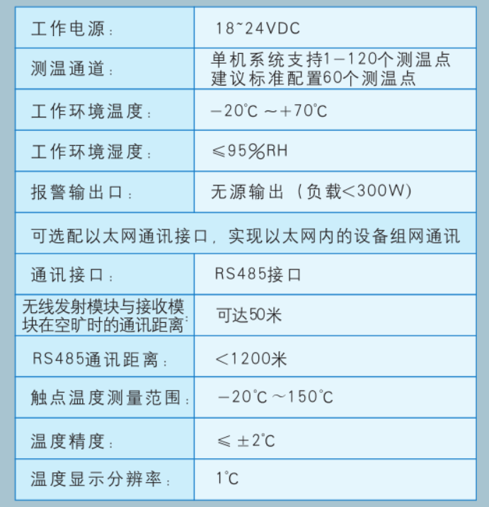 它是集在線溫度測量、數據采集、數據分析和控製功能於一體的現代化高科技產品。其測溫傳感器電源采用感應取電方式供電(≥5A)。該測溫羞羞羞小视频可集中采集、顯示多路電氣接點溫度(默認接收1-120個測溫點,可擴展)數據中續單元可根據現場情況進行選配。麵板防護等級IP54、殼體防護等級IP20。